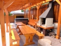 U chalupy je postavena velká dřevěná pergola s posezením, osvětlením, krbem a vířivkou. Venkovní zahrada je oplocena. Při grilování nebo relaxování ve vířivce tak budete mít naprosté soukromí. Vířivka potěší nejen v létě, ale bezvadně ji využijete i ve velmi mrazivých dnech. Parkování je přímo u chalupy.