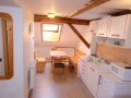 Ve stylově upraveném podkroví naleznete kromě 5 pokojů také 2 kuchyňky s posezením a 2 koupelny se sprchovým koutem a WC.